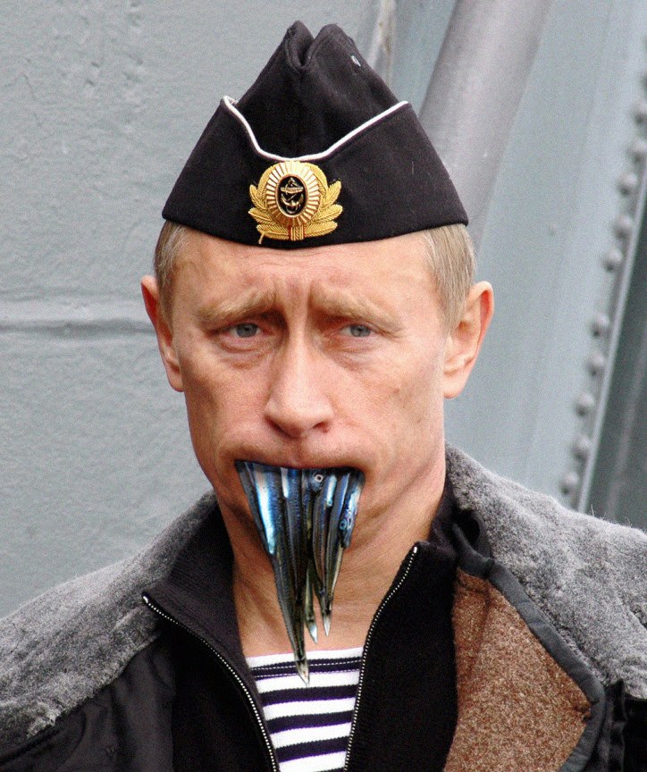Close up of Putin with a mouthful of sand eels